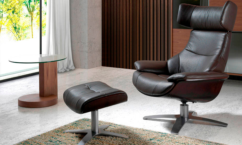 - элегантное кресло для дома, обтянутое кожей различных цветов, с округлыми пластичными формами;