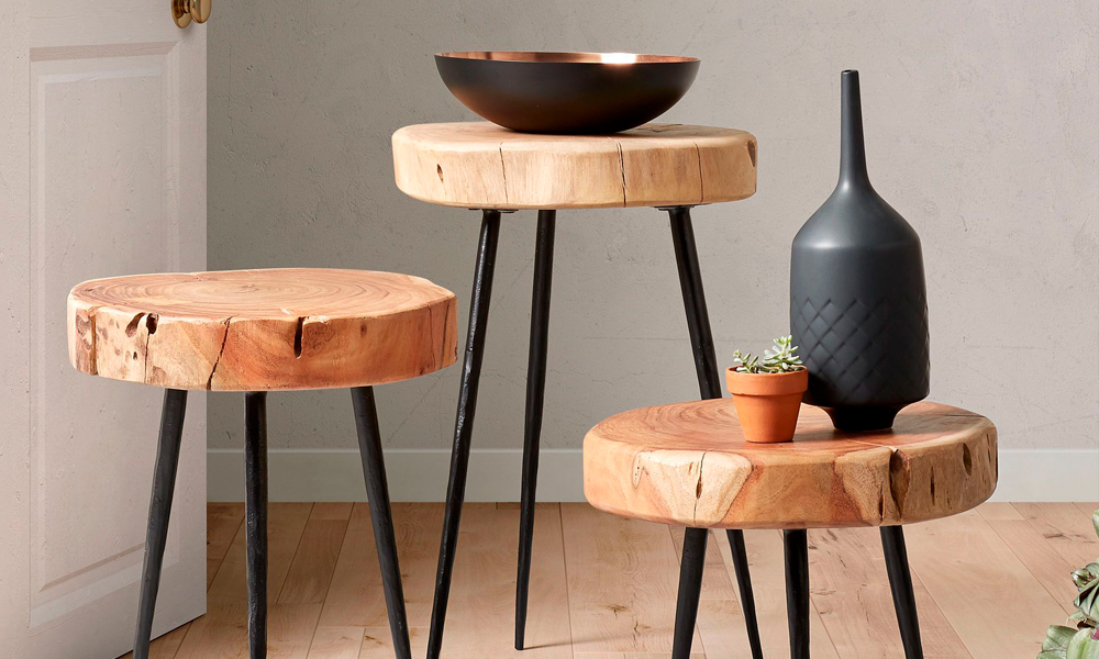 Компания La Forma (Julia Grup) создала целую группу современных интересных по своему решению столиков. В них задействованы такие материалы, как стекло, металл, дерево. Удивительная простота конструкций и материалов сочетается с тонкостью и изысканностью форм. Натуральность подчеркивается тем, что куски дерева сохраняют не только свой рисунок, но и фактуру и форму.