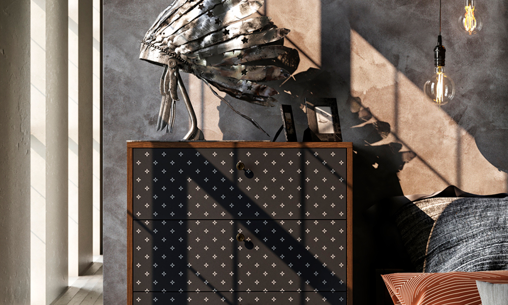 В серии TRIPTIKH представлены компактные комоды с двумя отделениями и без ручек, оформленные трехсторонним принтом. Помимо обширного ассортимента комодов, компания предлагает прикроватные тумбы.