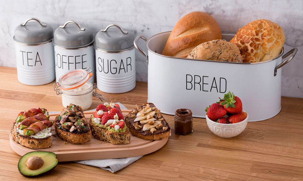 Заполняя кухонное пространство безделушками и фирменными атрибутами, не забывайте о функциональных хлебницах. Это не только емкость для удобного скрытого размещения любимого продукта, но и эффектный, стильный аксессуар. Хлебницы берегут свежие булки от зачерствения, образования плесени, засыхания и попадания влаги. В удобных емкостях легко хранить одну или несколько буханок — все зависит от габаритов. Они легко и гармонично создают особую атмосферу комфорта на кухне или в столовой, выразительно облагораживают интерьер, служат акцентными предметами декора, если оформлены в соответствующей манере. Не стоит недооценивать компактные, но вместительные хлебницы — они берегут продукт к ужину или обеду, оставляют его в первозданном аппетитном виде. Кстати, вы легко можете использовать эти атрибуты и для хранения сдобы, домашней выпечки.