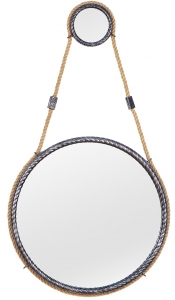 Интересно выглядят зеркала, выполненные в виде английского старинного щита, имеющие рустикальное обрамление. Рамка окрашена в серебристый цвет, что придает ей загадочный налет старины. В качестве подвеса тут используется джутовое волокно.