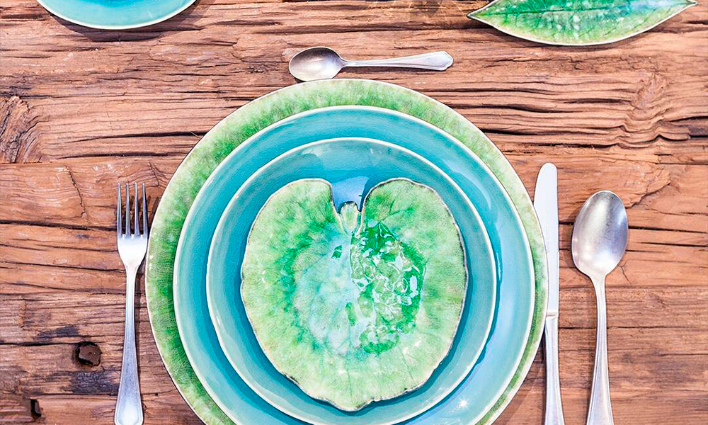 Природные оттенки Средиземноморья стали причиной появления таких невероятно красивых вещей. Голубая чистота волн, теплота земли, песчаный пляж, зеленая свежесть - это все соединилось в одной коллекции. Предлагаем просмотреть удивительные тарелки, выполненных в форме различных листьев. Яркие, сочные зеленые цвета приятно радуют глаза и поднимают настроение.