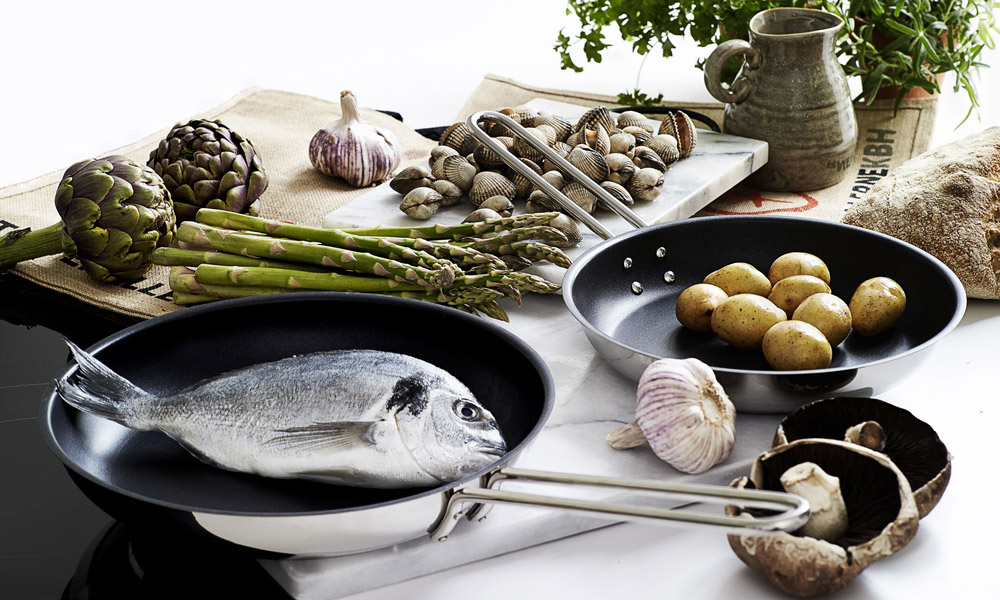 Сковороды из нержавеющей стали для улучшения эксплуатационных характеристик изделий предусмотрено антипригарное покрытие Slip-Let. Так обеспечивается возможность приготовления блюд без добавления жира. Это положительно сказывается на здоровье, потому что блюда получаются здоровыми и полезными. А вот для удобства сковороды оснащаются эргономичными ручками;