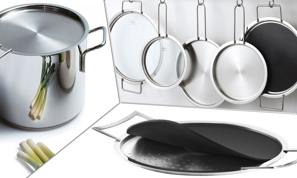 Крышки-дуршлаги изделия, предназначенные для удобного слива воды. Они незаменимы при приготовлении спагетти и картофеля. Крышки изготавлены из стали и дополняются дуршлагами из силикона, так же в каталоге серии Eva Solo Stainless Stee есть и стекляные крышки.