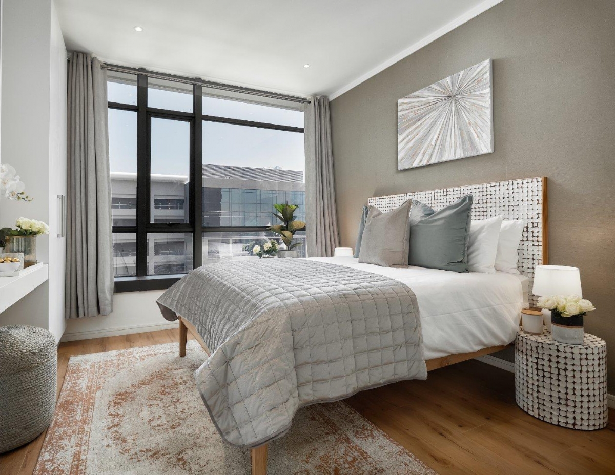 Комфортное и ненавязчивое точечное, но мягкое освещение не отвлекает на себя внимание от общей гармонии в интерьере спальни, в который так и хочется безвозвратно погрузиться, оставив за порогом суету.