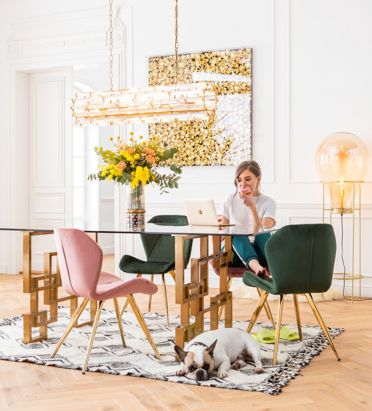Античные и ретро-элементы в этом экстравагантном стиле интерьера не пересекаются, а гармонируют друг с другом. Элегантность, нарядность, обилие золота — эти черты полностью отвечают требованиям эксцентричных людей, которые не идут на компромисс, принимают быстрые решения и наслаждаются жизнью во всех её проявлениях. Дерзкий характер отражают строгие геометрические квадраты с металлическим блеском, которые удерживают стеклянную столешницу Boulevard, и эффектные, неповторимые стулья Viva с золотистыми ножками в розовом и изумрудном исполнении.