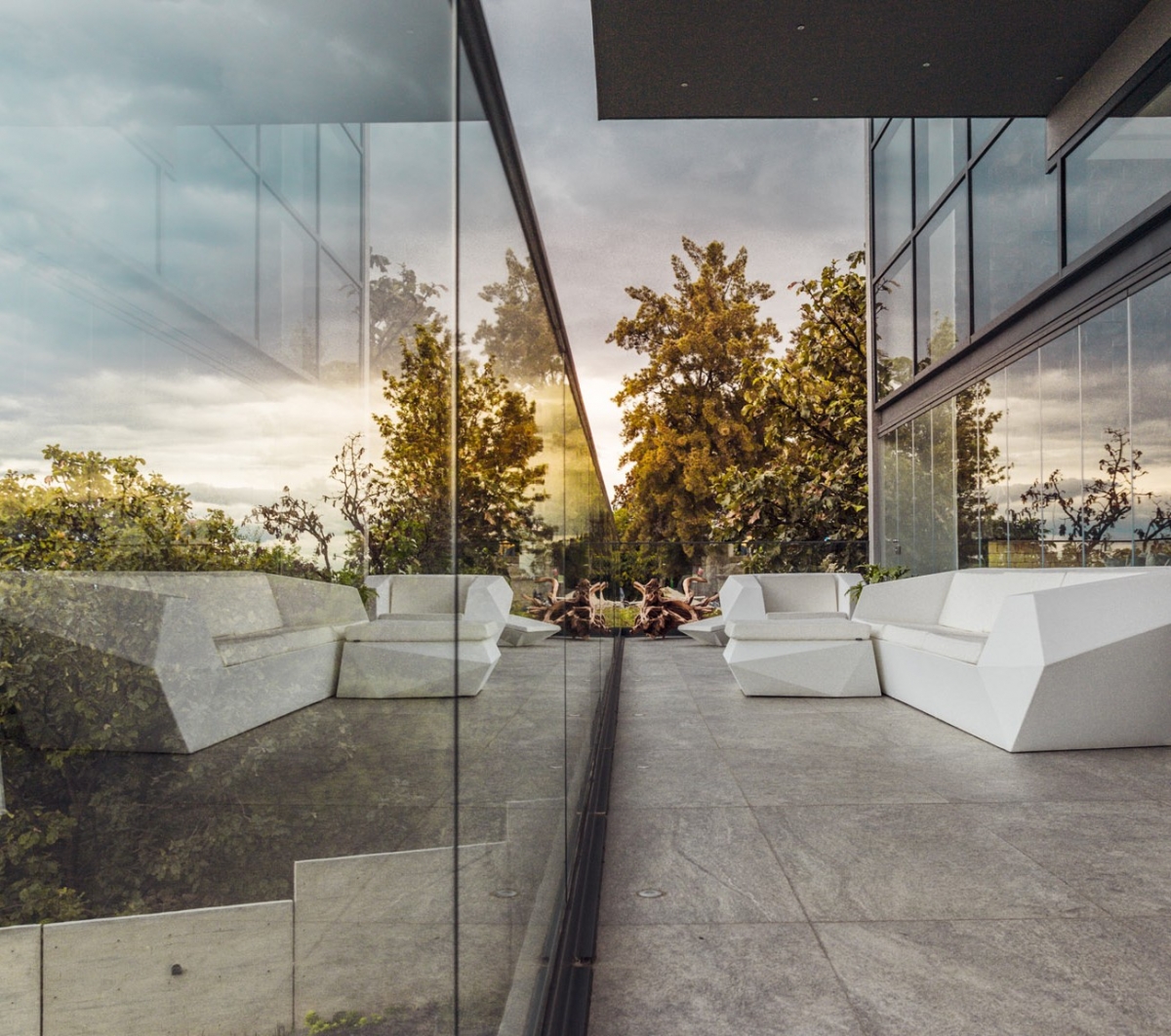Хаотично расположенная, белоснежная, причудливая мебельная группа в центре этого уникального интерьера. Эффектная терраса или веранда, собственная лаунж-зона на крыше высотного здания, оформленные с минималистскими тенденциями, отлично подходят для настоящих эстетов, тех, кто не любит лишних предметов и элементов декора, не терпит суеты и не поклоняется напыщенному, богатому убранству.
