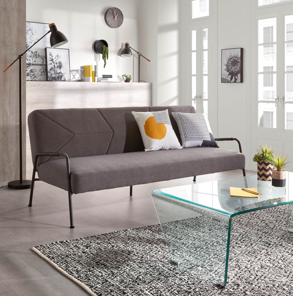 Вы поставили возле стены диван: на металлической опоре светло-серое мягкое сиденье и спинка. Вид его спокойный и аскетичный. Если к нему ничего не добавить, выглядит довольно скучно. Но положите на него две яркие подушки – и он сразу преобразится в стильную мебель.