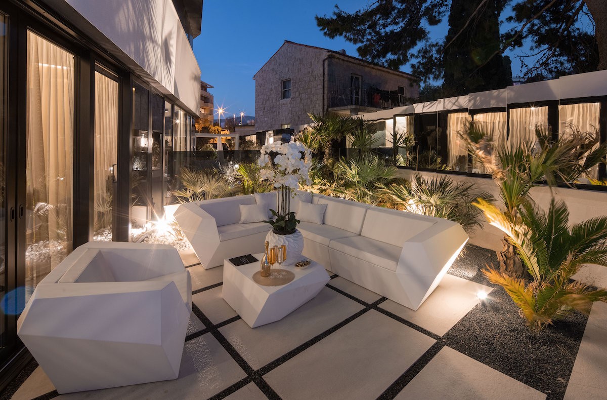 Выразительное, лаконичное, минималистское оформление дизайна интерьера терраса в загородном коттедже или на приморской вилле идеально в каждой линии, во всех очертаниях. Белоснежное цветовое решение достойно продолжает тему вечной релаксации. Слушая умиротворенный шум прибоя или наслаждаясь видом звездного неба, можно облокотиться на твердые грани оригинального и лаконичного модульного углового дивана Faz от бренда Vondom. Комфорт и эстетическое блаженство гарантированы.