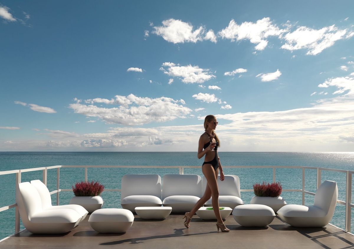 В белом классическом цвете перед нами предстает целая серия мебельных элементов Pillow. Это эстетичный пуф, лаконичное кашпо, кресло в минималистском стиле и идентичный журнальный столик. Все предметы словно отполированы морскими волнами, настолько гладкую и ровную поверхность они имеют. Остается лишь удивляться, как при минимуме оттенков удалось создать столь гармоничный интерьер. Это интересное и еще демократичное решение для отеля, гостиничного комплекса на одном из самых популярных курортов. Романтика прибоя, крики чаек, восхитительное небо над головой — такие ассоциации возникают при пристальном рассмотрении этого интерьера.