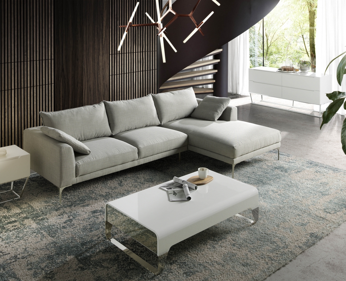 Угловой, удобный, вместительный серо-стальной диван Urban Deco в урбанистическом стиле — настоящий шедевр городского дизайнерского «искусства». Эстетичная обивка и утонченные серебристые ножки дополняют креативную концепцию создателя этой мебели. Компактная прикроватная тумбочка и буфет из коллекции Blanco похожи на белоснежные корабли, удивительные монументы на металлической основе. У буфета скрытая фурнитура прячет четыре больших ящика. Журнальный столик Atelier молочного цвета не оттягивает на себя внимание, но безупречно отражает индустриальный стиль дизайнерского оформления. Все в этой гостиной выступает за скупость декора, но подчеркивает безукоризненный вкус владельца квартиры или дома. Ему не нужны хитрости и уловки, чтобы показать все превосходство оформления комнаты.
