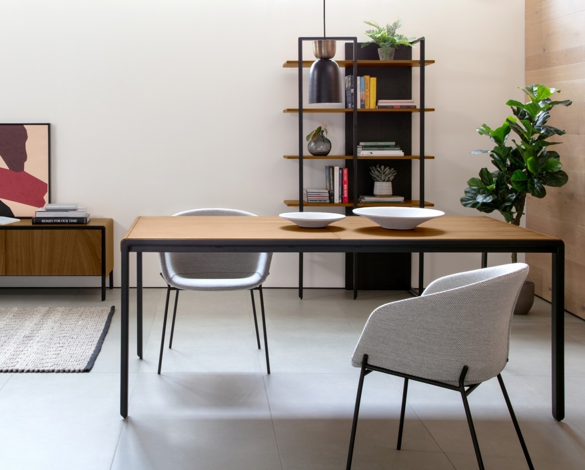 Прямоугольный стол Nadyria — эстетичная классика коричневого цвета на благородных ровных ножках. При желании его можно раздвинуть, добавив столешнице десяток сантиметров в длину. Светло-серые стулья Yvette с литыми подлокотниками и мягкой обивкой продолжают «гнуть» ту же концептуальную линию лаконичности и функциональности. Удобная эргономичная спинка, глубокие сиденья, войлочная ткань — все это добавляет комфорта во время пребывания в столовой. Коричнево-черный эффектный стеллаж объединяет пять широких вместительных полок. Органично выглядит тумба под телевизор из упомянутой коллекции Nadyria. Натуральный цвет древесины ореха и три вместительных отсека добавляют ей статуса.