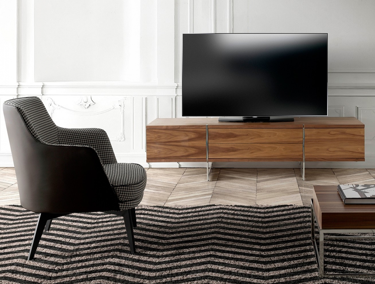 Эклектичный кофейный столик объединяет массив дерева и серебристый металл в единой устойчивой конструкции. Натуральность и элегантность в одном предмете меблировки выглядят таинственно и гармонично. Тумба Atractivo выглядит внушительно и грациозно одновременно. Удлиненная, с двумя вместительными выдвижными ящиками со скрытой фурнитурой, на металлической опоре стального цвета — она безукоризненно сочетается с остальными предметами меблировки и вписывается в минималистские «настроения» гостиной.