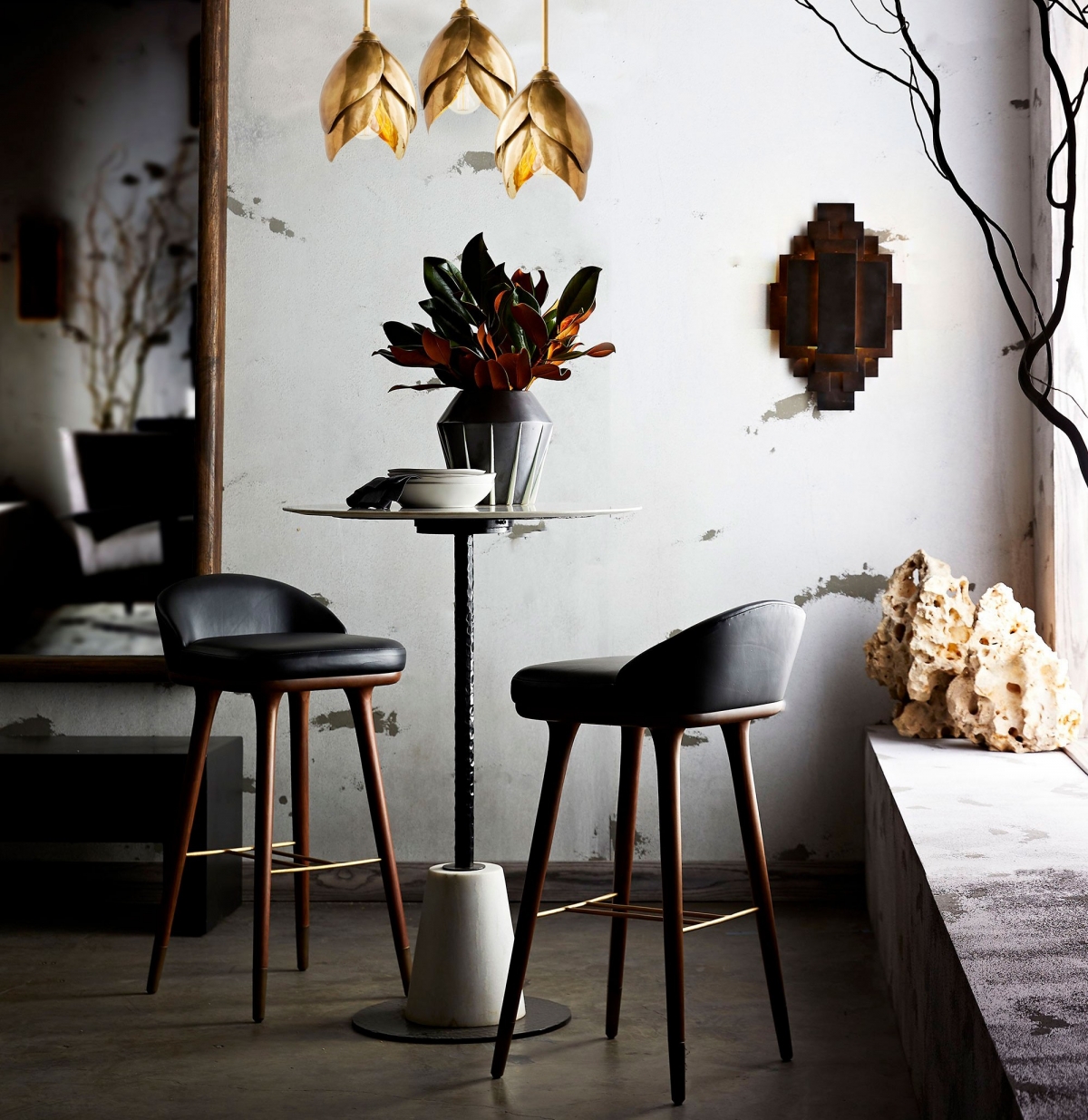 Как удалось добиться гармонии между практичностью и романтикой? С помощью правильно подобранных аксессуаров и предметов интерьера. Основа проекта — барный стол и два стула: максимально простые, универсальные формы. Это фон, на котором художник, используя дополнительные мазки, может создать настоящее произведение искусства.