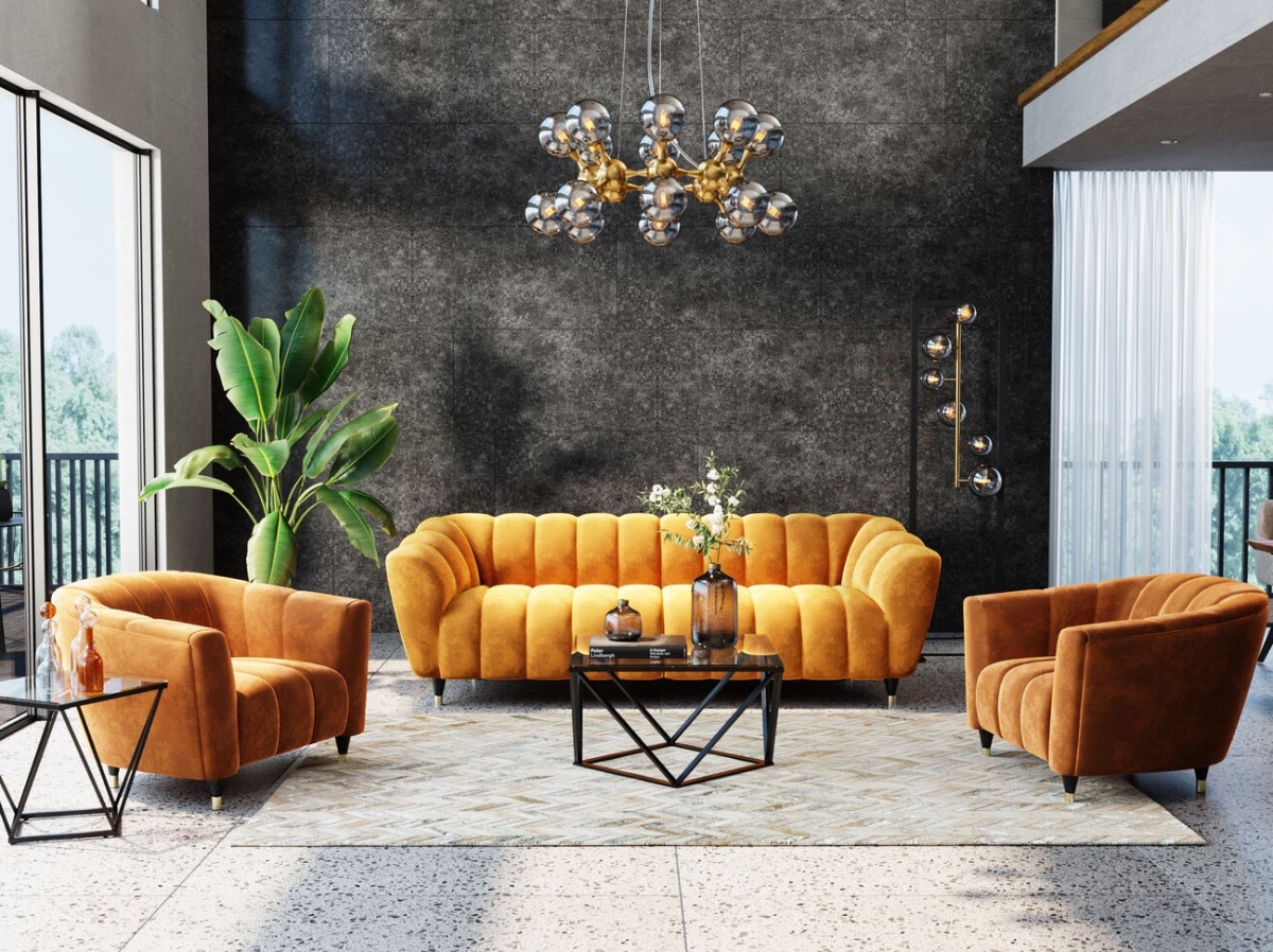Авангард и классические дизайнерские нотки нашли место для пересечения и вдохновили на создание эстетичной гостиной. В интерьере комнаты преобладают песочно-золотистые и темные оттенки. Это гостиная для молодой пары, людей, которые ценят мир искусства и не вдохновляются резкими контрастами. Оригинальный, лаконичный и изысканный одновременно интерьер несомненно порадует тех, кто видит гармонию в строгих линиях и приглушенной палитре.