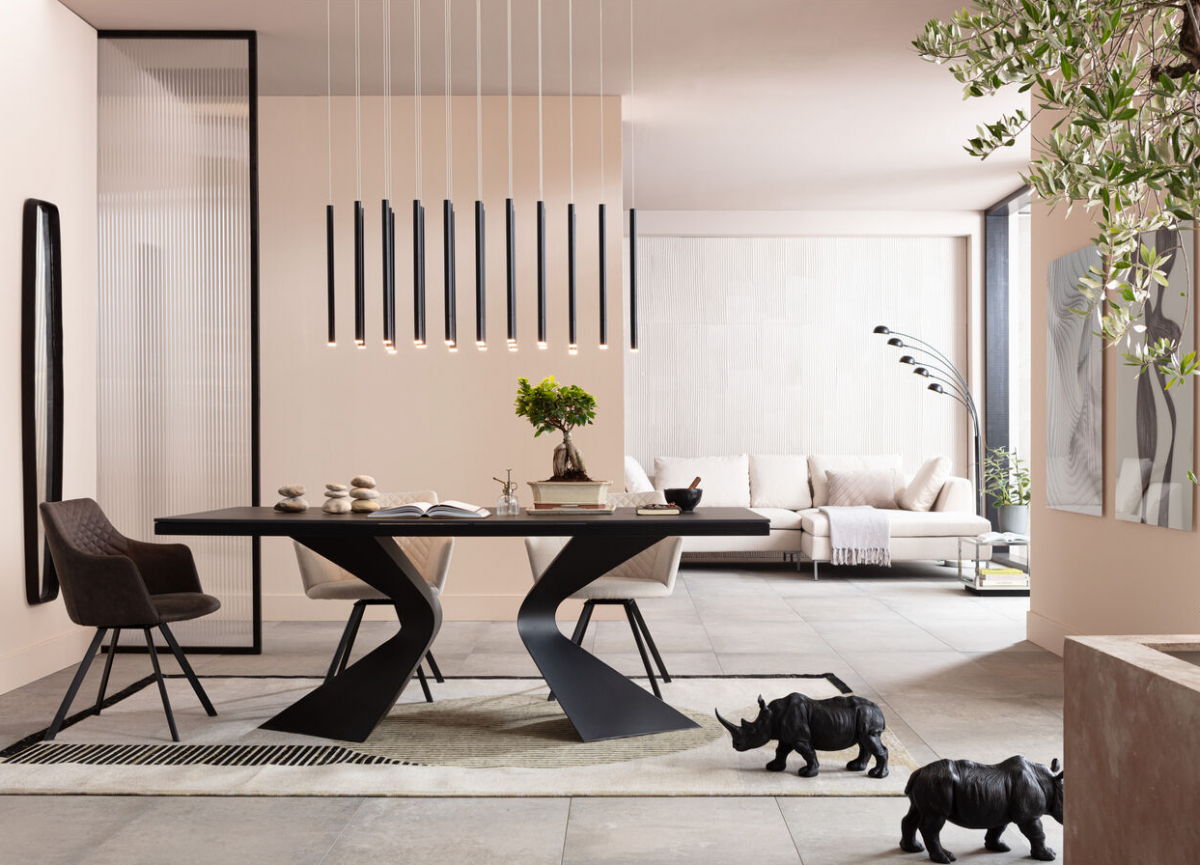 Создавать многофункциональные пространства – главный тренд современного дизайна. Эта гостиная удачна совмещена с обеденной группой. Здесь можно организовать рабочую зону, встречать гостей, проводить домашние бизнес-переговоры и собираться за ужином в кругу семьи.