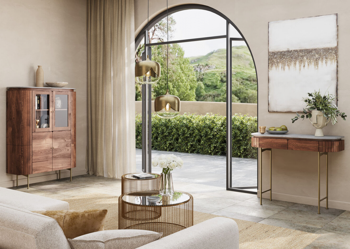 Особого внимания заслуживают предметы мебели – буфет и консоль Grace. Они выглядят элегантно и рукотворно. Внимание привлекает лаконичность форм, простота линий и полное отсутствие декор-элементов. Такую мебель по достоинству оценят любители практичного современного дизайна.