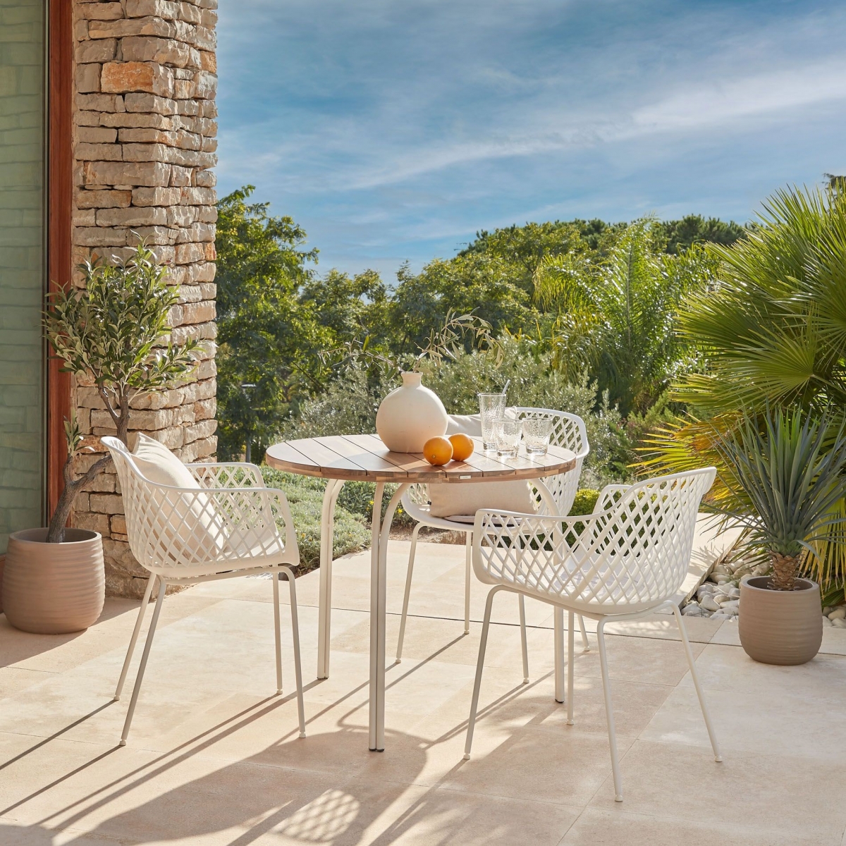 Простой, но в то же время эргономичный комплект, состоящий из стола и стульев, станет идеальным решением для веранды, уличной беседки, летней площадки кафе или ресторана.