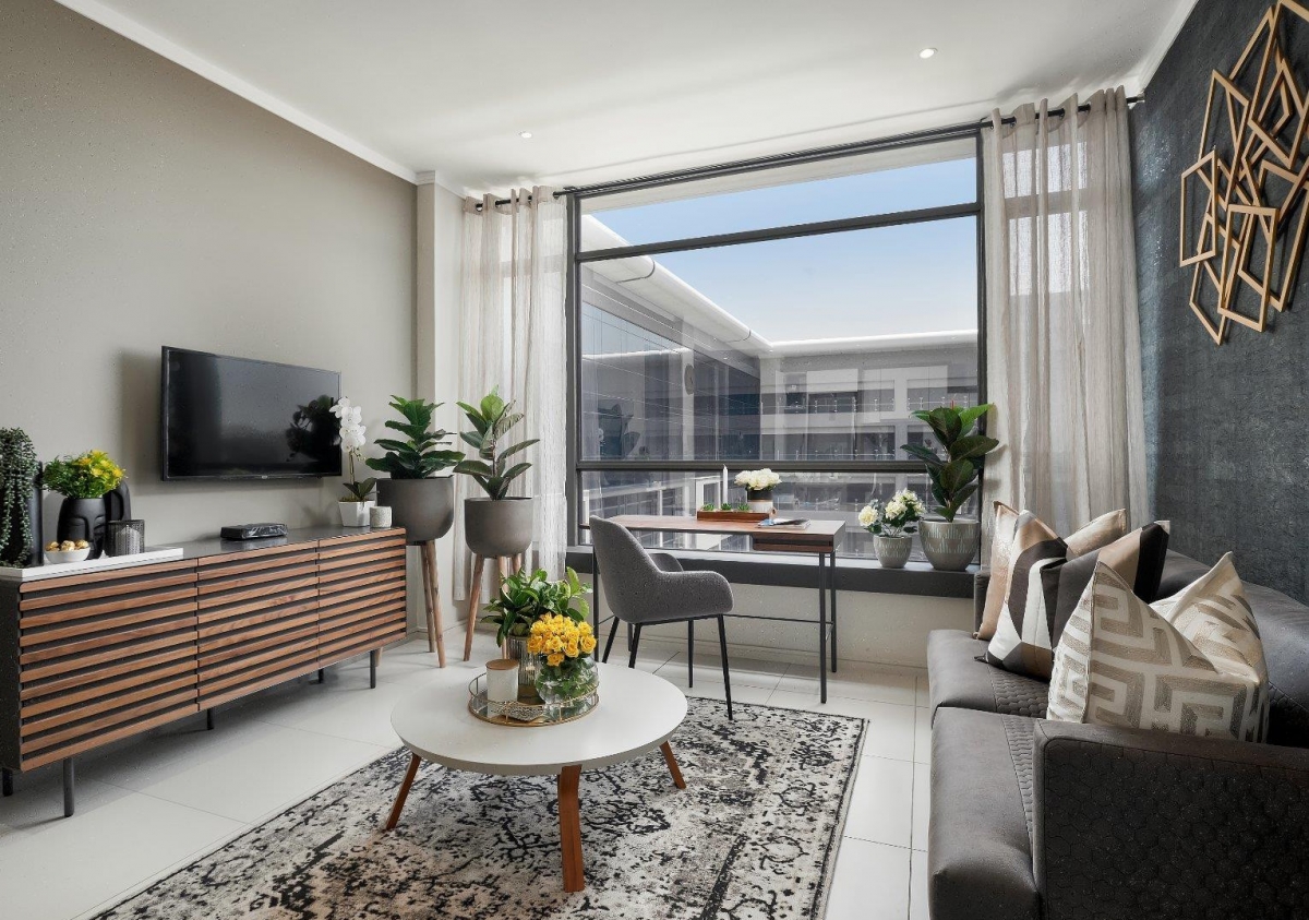 Характер дизайну придают геометрические элементы – металлическое панно La Forma, узоры текстиля и деревянной отделки фасадов. Плавные линии кашпо Merida и мягкой мебели делают интерьер более гармоничным. Облегченный письменный стол Mahon на металлических ножках и мягкий стул Kona у окна не мешают естественному освещению комнаты. Вместе они создают удобный уголок для работы или чтения.