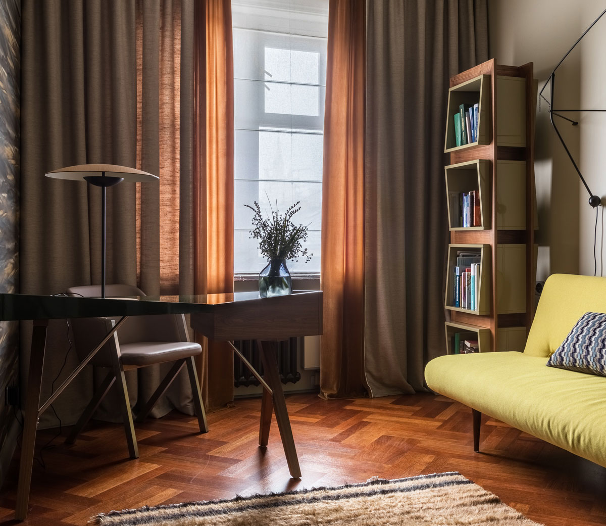 Компактные предметы мебели не загромождают пространство - только функциональность, основательность и надежность. Это особенно важно для кабинета или рабочего уголка в спальне небольшого размера.