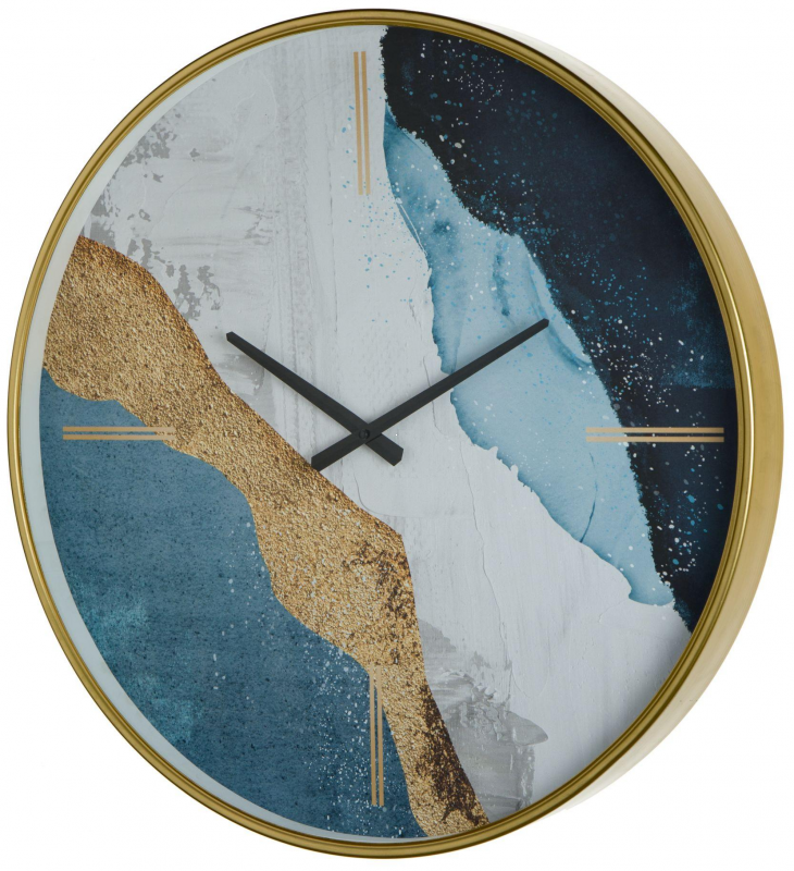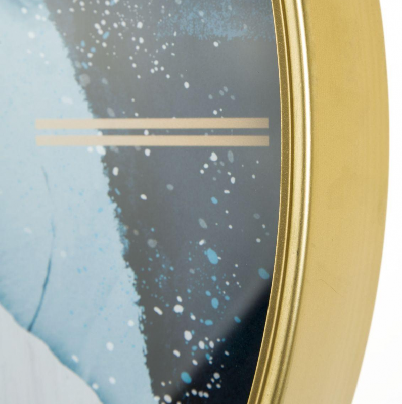 Часы «Alcides» представляют собой элегантный круглый аксессуар с шикарным металлическим корпусом, выполненным в золотом цвете. Циферблат, закрытый прочным стеклом, украшен абстрактным узором в спокойных оттенках синего и белого, придающим изделию уникальность. Красивые золотистые акценты на циферблате гармонично дополняют общую концепцию, создавая ощущение безмятежности и стиля. Эти часы не просто показывают время, но и становятся настоящим произведением искусства на стене.