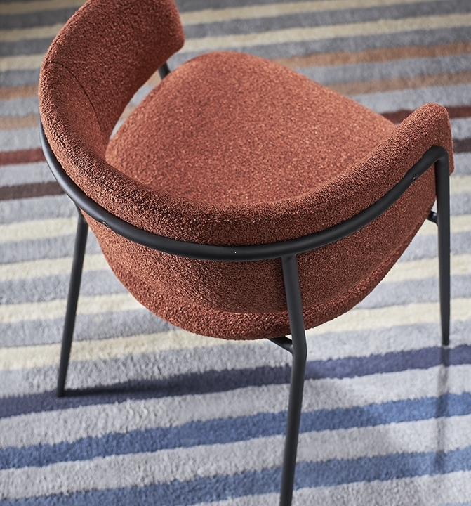 Стул Helning с буклированной обивкой непременно понравится любителям уюта и стильных предметов интерьера. Дизайнеры по всему миру выбирают мебель “букле”, так как она смотрится органично даже в самых минималистичных пространствах, добавляя оформлению особый шарм и глубину. Особенности и преимущества: - Буклированная обивка устойчива к износу и приятная на ощупь, на ней практически не видны затяжки и загрязнения. - Ножки стула изготовлены из железа с порошковым покрытием, которое защищает их поверхность от коррозии и механических повреждений. - Мягкое сиденье и спинка, плавно переходящая в подлокотники, обеспечивают комфортную посадку. - Стул цвета терракота легко сочетается с предметами интерьера различных оттенков, что позволяет экспериментировать с дизайном помещения. Материалы: железо, 100% полиэстер, фанера (тополь), пенополиуретан. Размеры: 51x56,5x74,5 см. Высота сиденья: 46 см. Цвет: терракота. Рекомендуется регулярно пылесосить мебель с помощью специальной насадки – резиновой или мягкой щетки. Образовавшиеся пятна можно удалять губкой или салфеткой со слабым мыльным раствором воды. Запрещается использовать абразивные материалы и агрессивную бытовую химию.