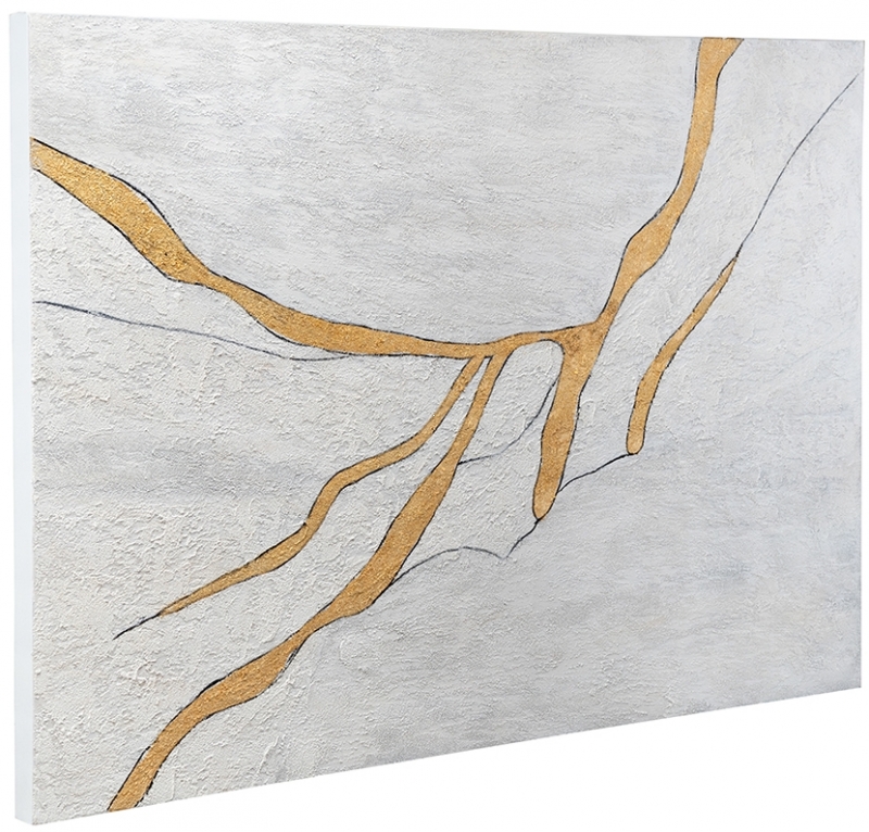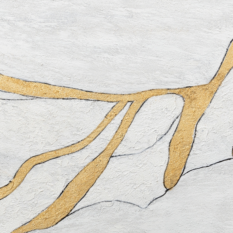 Выполненное в современном стиле, панно сочетает в себе бежевый фон с выразительными золотыми акцентами, которые придают ему особую изюминку. Легкие линии и минималистичный подход делают его универсальным элементом для любого интерьера.