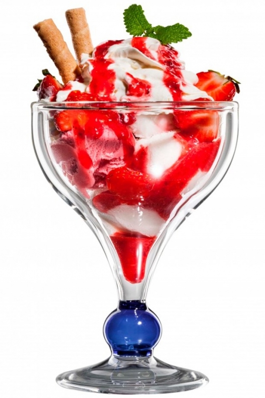 Мороженица в форме конуса на ножке с утолщением из синего стекла рассчитана на четыре-пять шариков. В таких креманках могла бы подавать это лакомство сама Фея мороженого. Замороженные десерты в двойном термостекле дольше сохранят праздничный вид и изысканный вкус, их можно держать в руках, не чувствуя холода. Мороженица выдута вручную из боросиликатного стекла, чрезвычайно легкого и прочного. Оно устойчиво к царапинам и перепадам температур, поэтому хорошо переносит многократное мытье в посудомоечной машине.