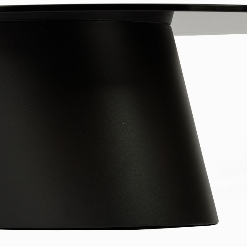 Кофейный столик Exalto в сером цвете со стеклянной столешницей и стальным основанием выглядит цельно, графично и очень современно. Круглая столешница из закалённого стекла имеет благородный дымчатый оттенок и тонкий аккуратный край, благодаря чему конструкция смотрится легко, несмотря на выразительную форму. Основание выполнено в виде усечённого цилиндра с мягким наклоном стенок: такая геометрия добавляет интерьеру архитектурный характер и делает силуэт столика запоминающимся. Матовая чёрная сталь красиво контрастирует с гладкой стеклянной поверхностью, создавая баланс между строгостью и уютом. Модель хорошо работает как самостоятельный акцент и как часть продуманной дизайнерской композиции.