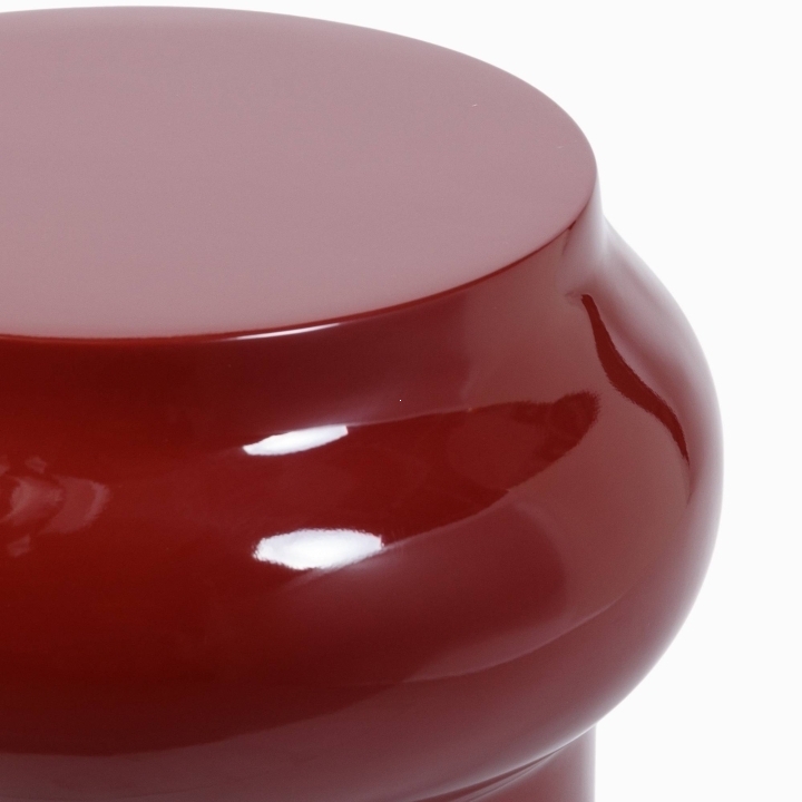 Вспомогательный столик Perry в винно-красном цвете с глянцевой поверхностью выглядит как полноценный арт-объект и при этом остается функциональным предметом мебели на каждый день. Его форма построена на мягких округлых объемах: цилиндрическое основание переходит в расширенную верхнюю часть, создавая эффект скульптурности и визуальной мягкости. Насыщенный красный оттенок добавляет интерьеру тепла, характера и глубины, а гладкая блестящая фактура красиво отражает свет. Каркас из стекловолокна делает образ цельным и современным, без тяжеловесности. Такой журнальный или приставной столик особенно хорошо работает там, где хочется добавить цветовой акцент и выразительную пластику.