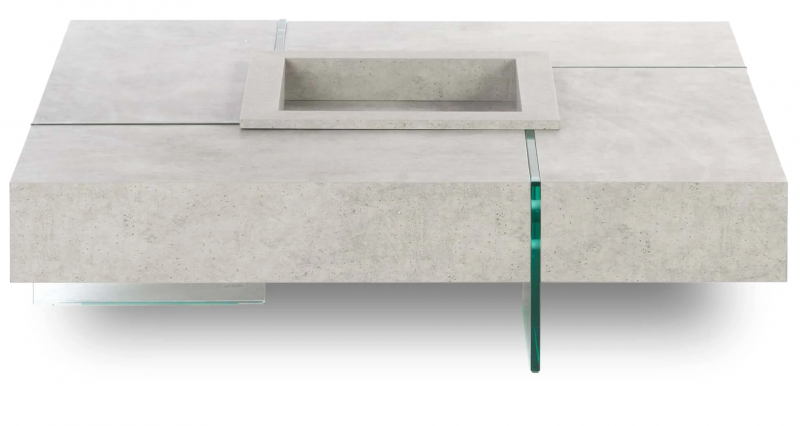 Кофейный столик Beton в светло-сером цвете с отделкой из фибробетона и прозрачными стеклянными опорами выглядит как цельный архитектурный объект. Его квадратная композиция построена на чистой геометрии, строгих линиях и выразительном контрасте материалов. Матовая столешница с бетонной фактурой придаёт интерьеру глубину и благородную сдержанность, а закалённое стекло в основании создаёт эффект парящей формы. Центральное углубление делает дизайн более сложным и запоминающимся, добавляя столику скульптурный характер. Модель органично сочетает брутальность, лёгкость и выверенную современную эстетику.