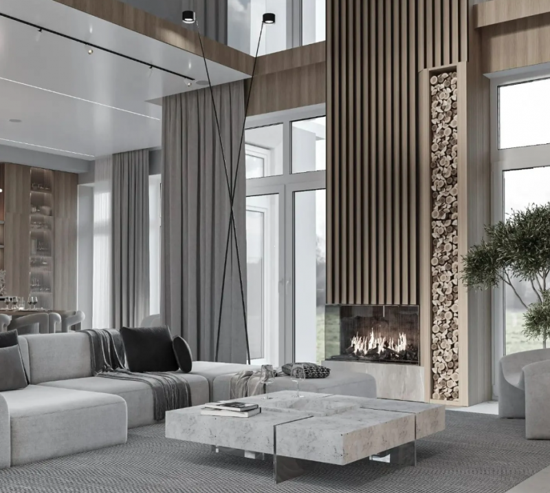 - фибробетонная отделка с актуальной фактурой натурального бетона