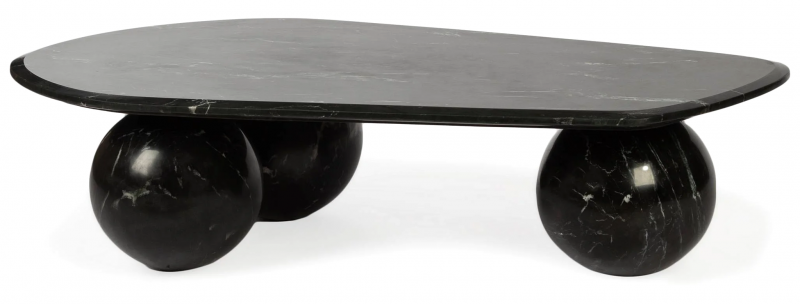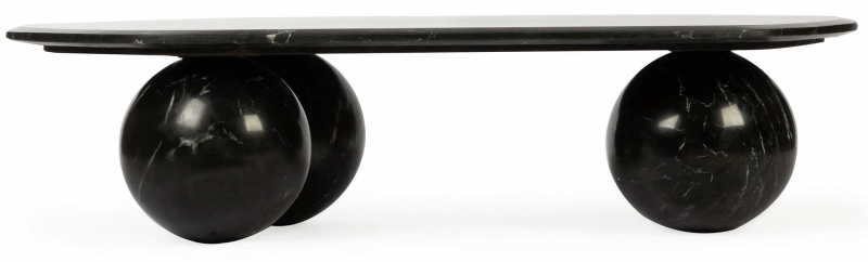 «Peregrine» чёрный мраморный кофейный столик с шарообразными опорами | Современная скульптурная эстетика | акцентный дизайн от Cosmo