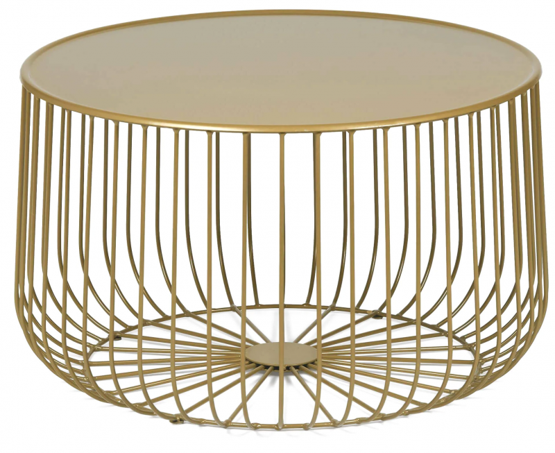 Кофейный столик Flat Cage в матовом золотом цвете выполнен из стали и сочетает лаконичную круглую столешницу с эффектным каркасом в виде тонкой металлической клетки. Его силуэт выглядит графично, но не тяжело: вертикальные прутья плавно уходят к основанию, создавая красивый ритм линий и ощущение объёма. Металл с мягким сатиновым блеском добавляет интерьеру тепла и делает модель особенно выразительной в дневном и вечернем свете. Дизайн балансирует между современным минимализмом, лофтом и лёгкими арт-деко нотами, поэтому столик становится не просто функциональной поверхностью, а заметным декоративным акцентом.