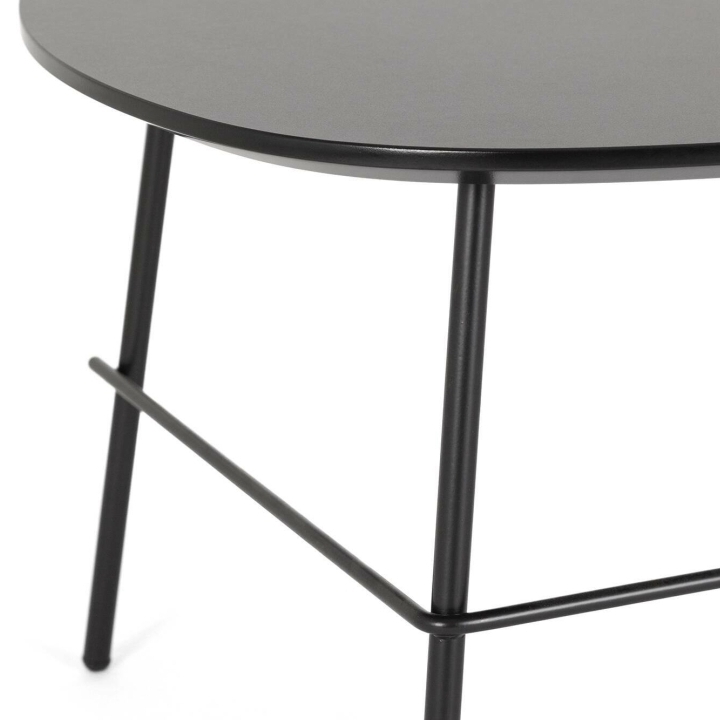 Эта модель особенно уместна в интерьерах в стиле минимализм, contemporary, лофт, japandi и мягкий сканди. Благодаря нейтральному чёрному цвету и чистой геометрии столик хорошо работает как акцент и как спокойная базовая мебель. Он гармонично смотрится рядом с прямыми диванами, модульными системами, креслами на тонких ножках и коврами природных оттенков. Необычная форма столешницы помогает сделать обстановку интереснее, если Вы хотите уйти от слишком строгих линий, но сохранить ощущение порядка и лёгкости.