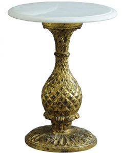 Столешница и основание выполнены из мрамора, что подчеркивает его природную красоту и уникальные прожилки. Мраморная поверхность добавляет изысканности, а ее естественный рельеф создает эффект глубины и текстуры.