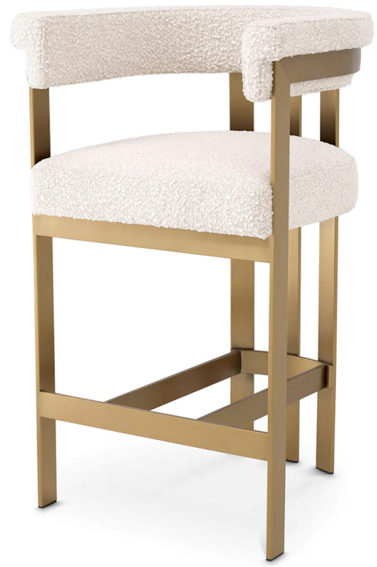 Обивка из уютного и элегантного материала Bouclé Cream придаёт этому стулу исключительный комфорт и стиль. Финиш из полированной латуни подчеркивает его роскошь и создает изысканный акцент для любогоCounters или кухонного пространства.
