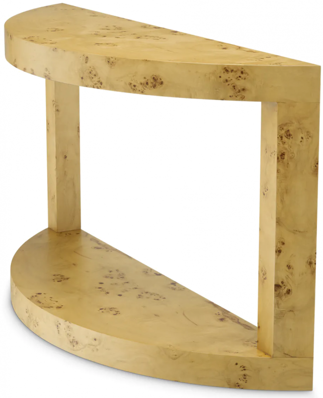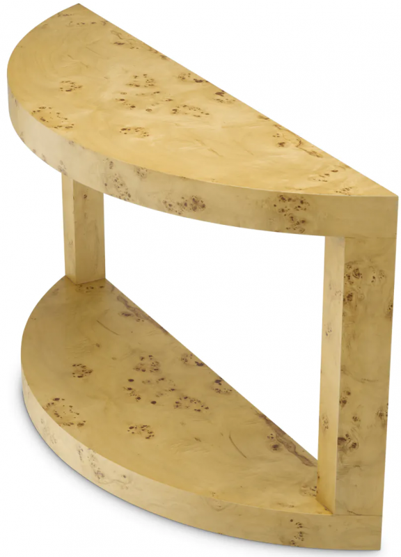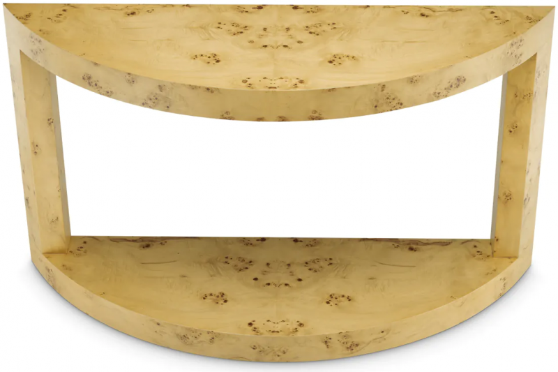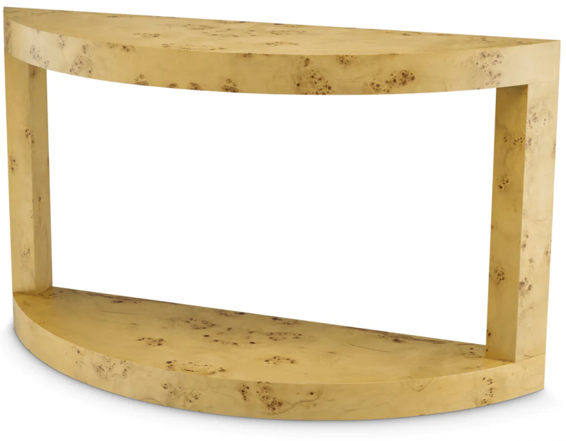 Discover sophistication with the Console Table Raphael, showcasing captivating mappa burl veneer. Its unique visual texture emanates elegance, merging contemporary trends with classic allure. This stunning piece is a testament to luxury, crafted for those who appreciate the finer things in life. Elevate your interior with this refined statement of style and taste.