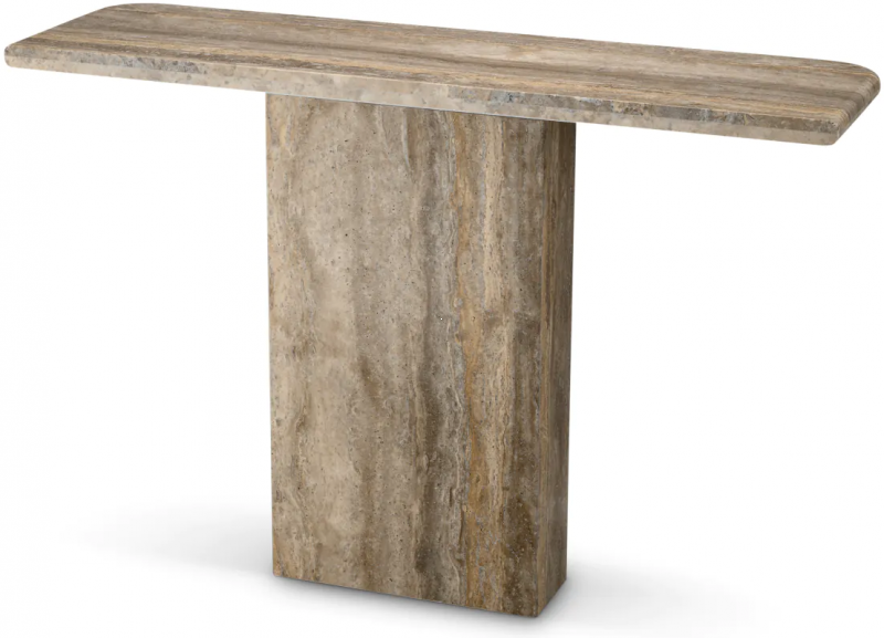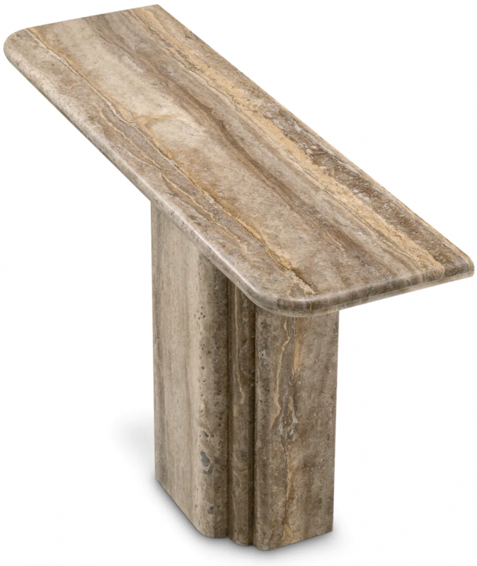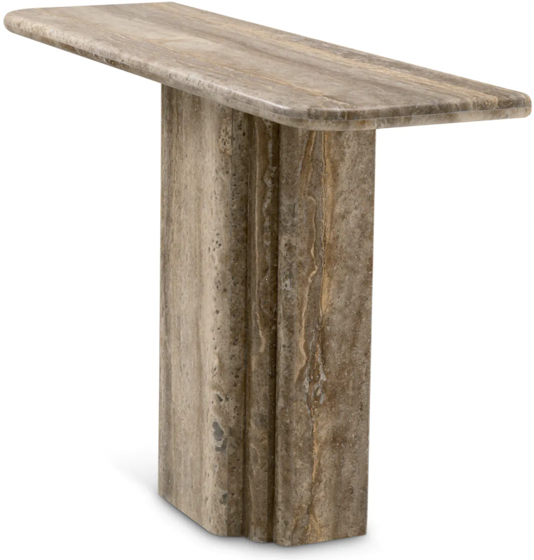 Revel in the subtle opulence of the Console Table Norrington, where sleek silver travertine surfaces meld with a refined silhouette. This statement piece balances cool sophistication and natural stone, offering a serene yet striking presence that enhances upscale interiors with understated elegance.