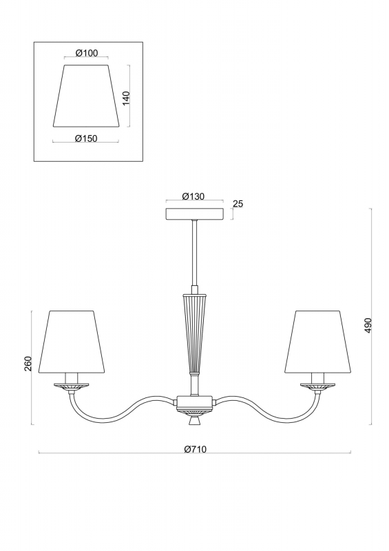 - Цвет абажура: белый текстиль
