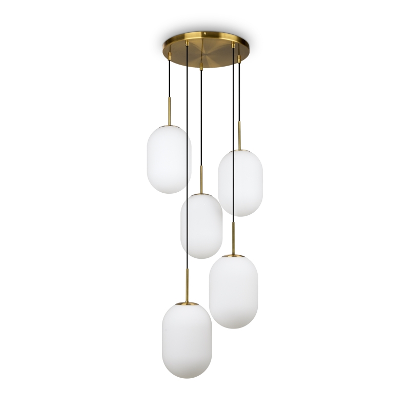 Подвесной светильник Freya Sharlot латунь, матовое стекло, 5 плафонов