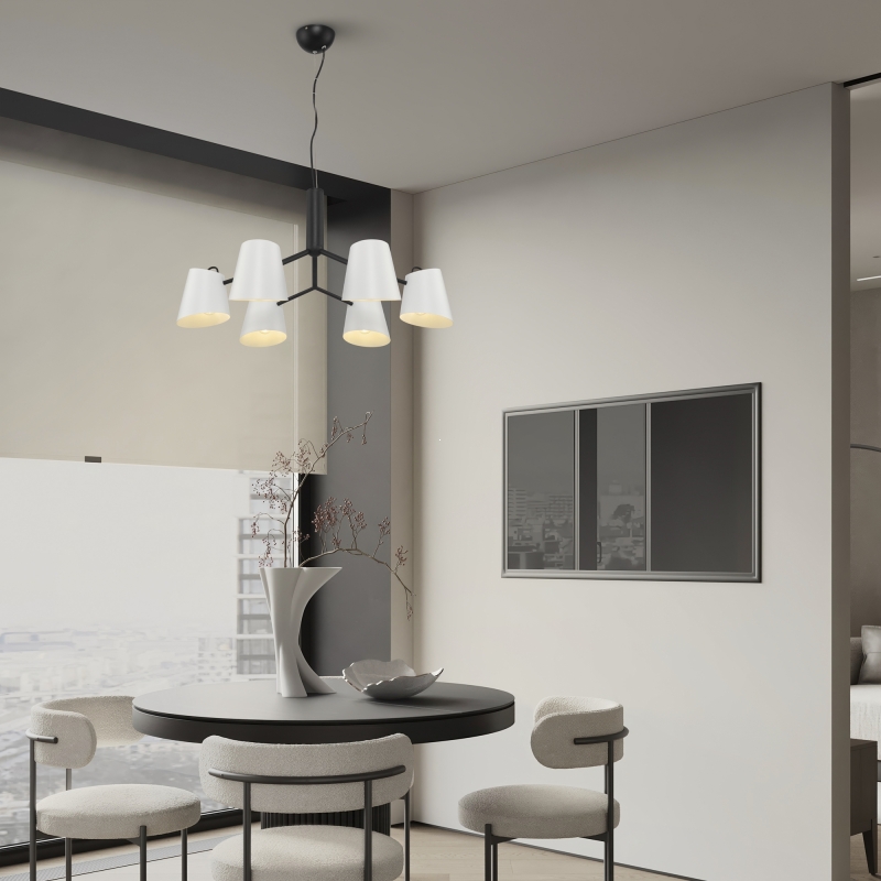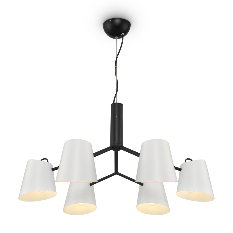 Этот светильник имеет оригинальную конструкцию с шестиугольными плафонами из белого металла, которые придают ему уникальный и современный вид. Черный каркас контрастирует с яркими плафонами, создавая гармоничное сочетание. Его форма и текстура обеспечивают равномерное распределение света, а стиль Nordic добавляет нотки скандинавского минимализма.