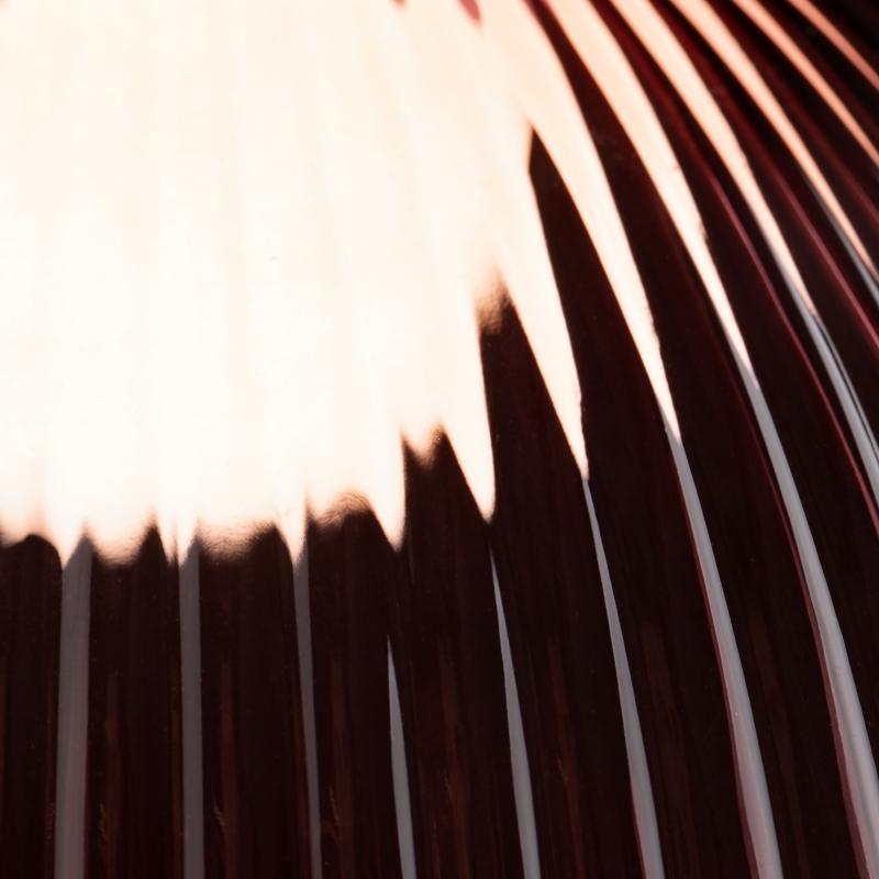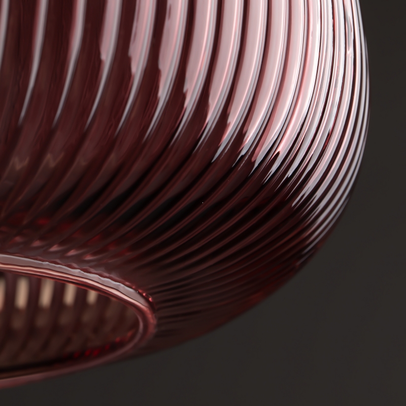 Светильник имеет оригинальную конструкцию с округлым абажуром, выполненным из рельефного стекла. Чёрный металлический каркас придаёт ему современный вид. Красный цвет абажура добавляет яркости и фокуса в любом пространстве. Современный стиль и фактура делают эту модель отличным выбором для создания акцентов в интерьере.
