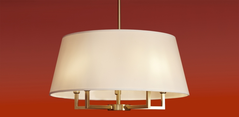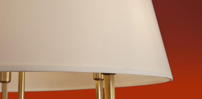 Этот светильник обладает строгими геометрическими формами, что делает его универсальным элементом декора. Латунь в сочетании с белым текстильным абажуром создает стильный контраст, а конусообразная форма абажура обеспечивает мягкое и равномерное распределение света. Материал конструкции — металл, что гарантирует долговечность и надежность.