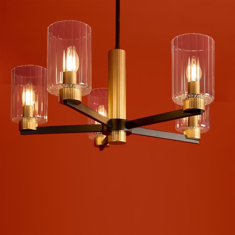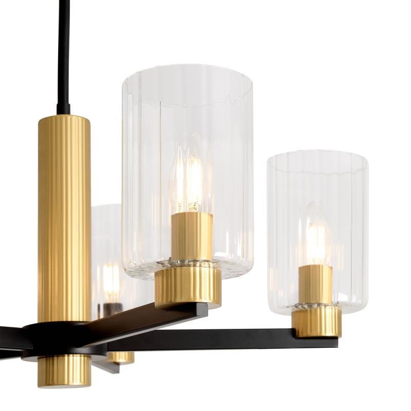 Светильник Ombre выделяется своей уникальной конструкцией и современным дизайном. Металлическая арматура черного матового цвета с латунными вставками создает контраст и привлекает внимание. Прозрачные цилиндрические стеклянные абажуры добавляют легкости и изящества, обеспечивая мягкое рассеивание света. Стильный и современный, этот светильник станет не только источником света, но и акцентом вашего интерьера.