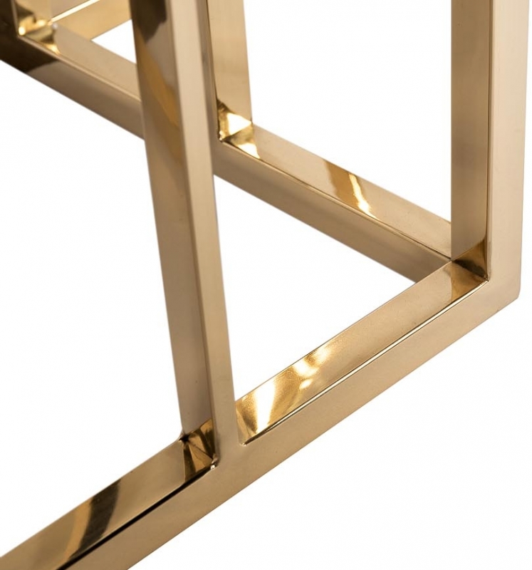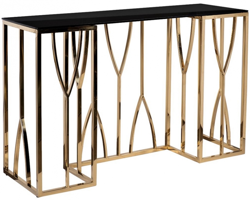 Богато отделанная консоль золотого цвета моментально придаст любому помещению ощущение роскоши и достатка. Этот предмет интерьера самодостаточный, но может использоваться как подставка для любых бытовых мелочей, предметов декора. Очень удачно использовать изделие как консоль в спальню. Изделие удобно располагается возле стены, поэтому впишется даже в ограниченное пространство. Представленная на сайте консоль из металла – продукт высоких технологий. Она была создана на современном производстве с использованием высокотехнологичного оборудования. Кроме того, такой предмет – отличное украшение любой комнаты вашего дома.