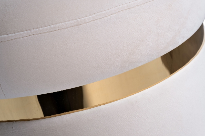 Ищете способ дополнить свой интерьер изысканным акцентом? Пуф Apo станет идеальным решением для создания атмосферы уюта и гармонии. Его мягкий велюр в нежном оттенке слоновой кости в сочетании с золотистой отделкой из нержавеющей стали добавит нотку роскоши в любое пространство.