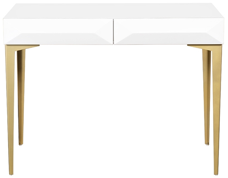 Консоль Alesia представлена в элегантном белом цвете, что делает ее универсальной для любого интерьера. Длинные металлические ножки золотистого оттенка не только придают изделию изысканность, но и обеспечивают надежность. Граненый фасад добавляет уникальности и стиля, а гладкая поверхность подчеркивает современный подход к дизайну. Консоль выглядит легкой и воздушной, что создает ощущение простора в комнате.