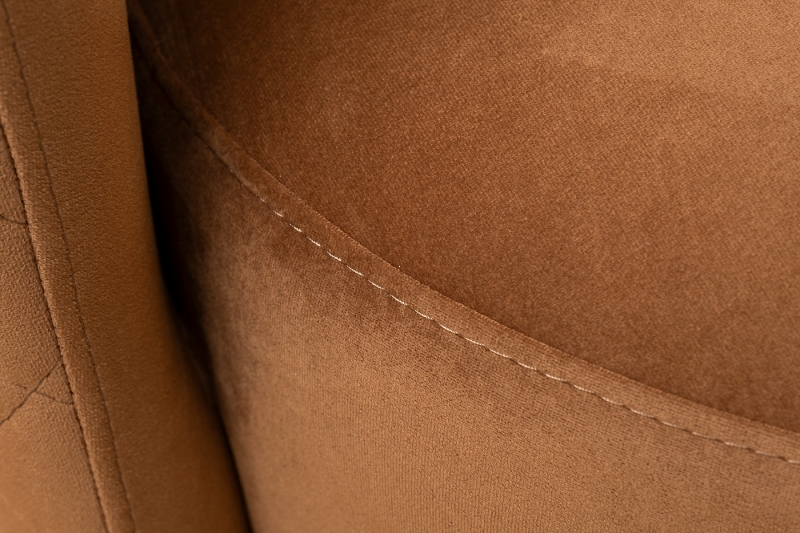 Кресло Verona впечатляет своим современным и элегантным дизайном. Оно выполнено в теплых коричневых оттенках, что делает его универсальным для различных интерьеров. Обивка из износоустойчивого велюра с мягкой текстурой добавляет благородства и создает приятные тактильные ощущения. Плавные линии кресла, а также утонченные детали, такие как стежка на боковых частях, делают его истинным произведением искусства.
