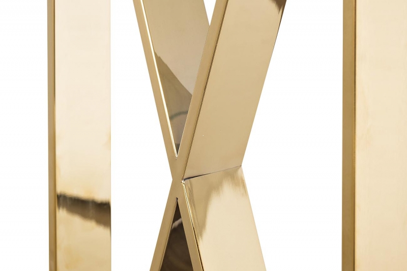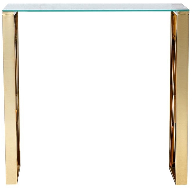 Консоль Tricia — это шедевр современного дизайна, который сразу привлекает внимание. Столешница из стекла подчеркивает легкость и воздушность конструкции, в то время как золотые металлические ножки добавляют роскоши и блеска. Дизайн ножек выполнен в виде изысканных пересечений, что придает мебели уникальность и характер. Эта консоль станет не только функциональной, но и стильной деталью вашего интерьера.